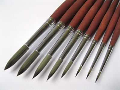 Kvalitní štětce Da Vinci kulaté určené zejména pro olejomalbu a akryl se silnými syntetickými vlákny a s dlouhou rukojetí z nelakovaného mořeného dřeva.