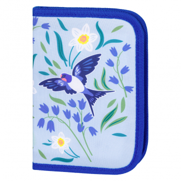 Světle modrý penál s růžovými detaily vhodný od první třídy ZŠ.